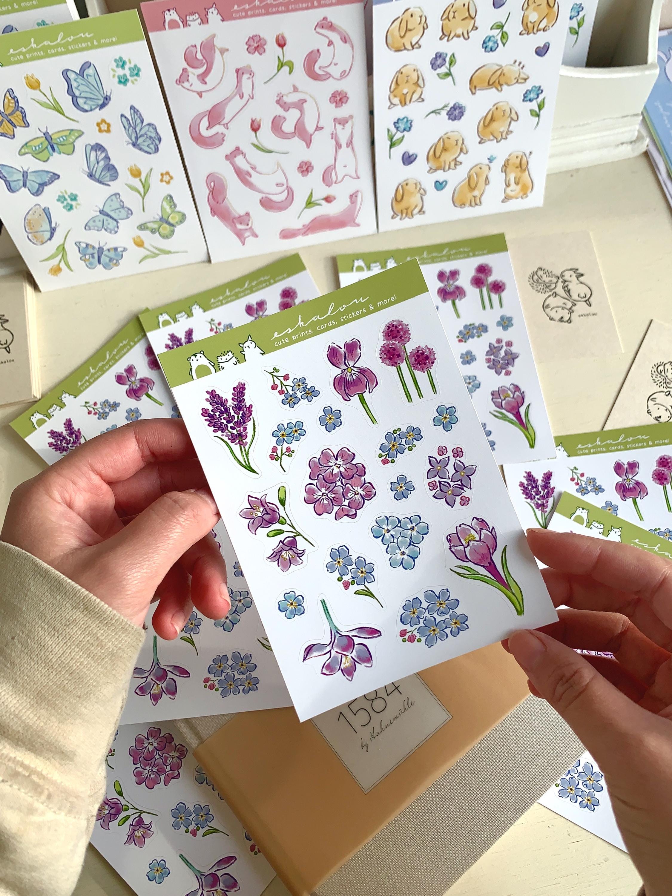 Eco-Friendly Flower Floral Sticker Sheet: Kawaii Journal Planner Stickers